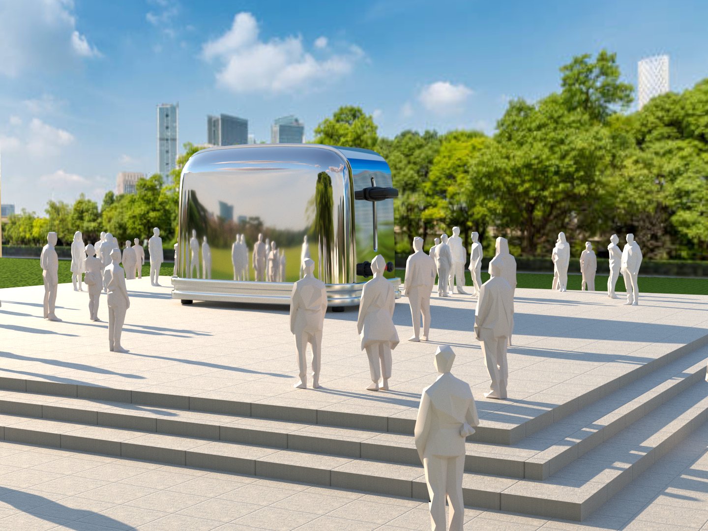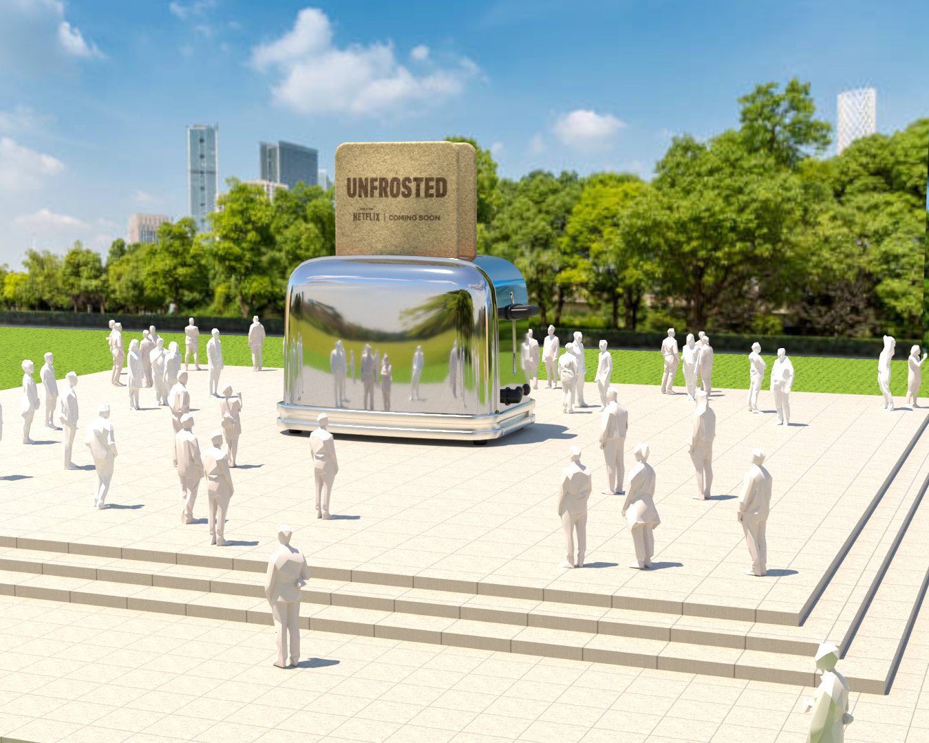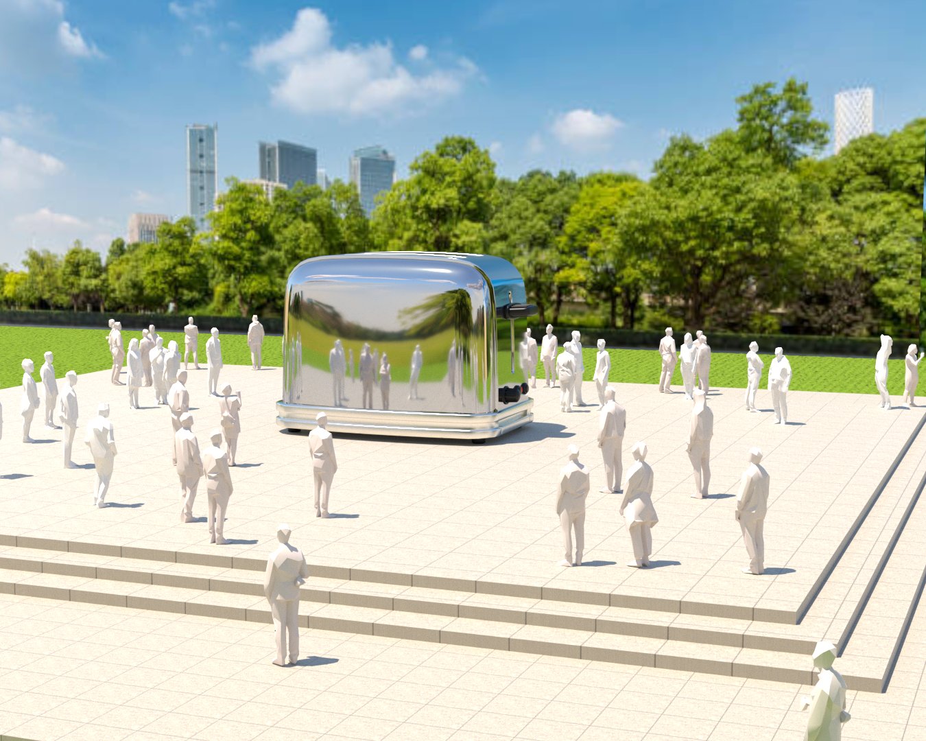 Project: Recreation of a public square featuring a giant toaster as the central focal point. A dining area was placed to one side, and the scene also incorporated the crowding and flow of people throughout the space.