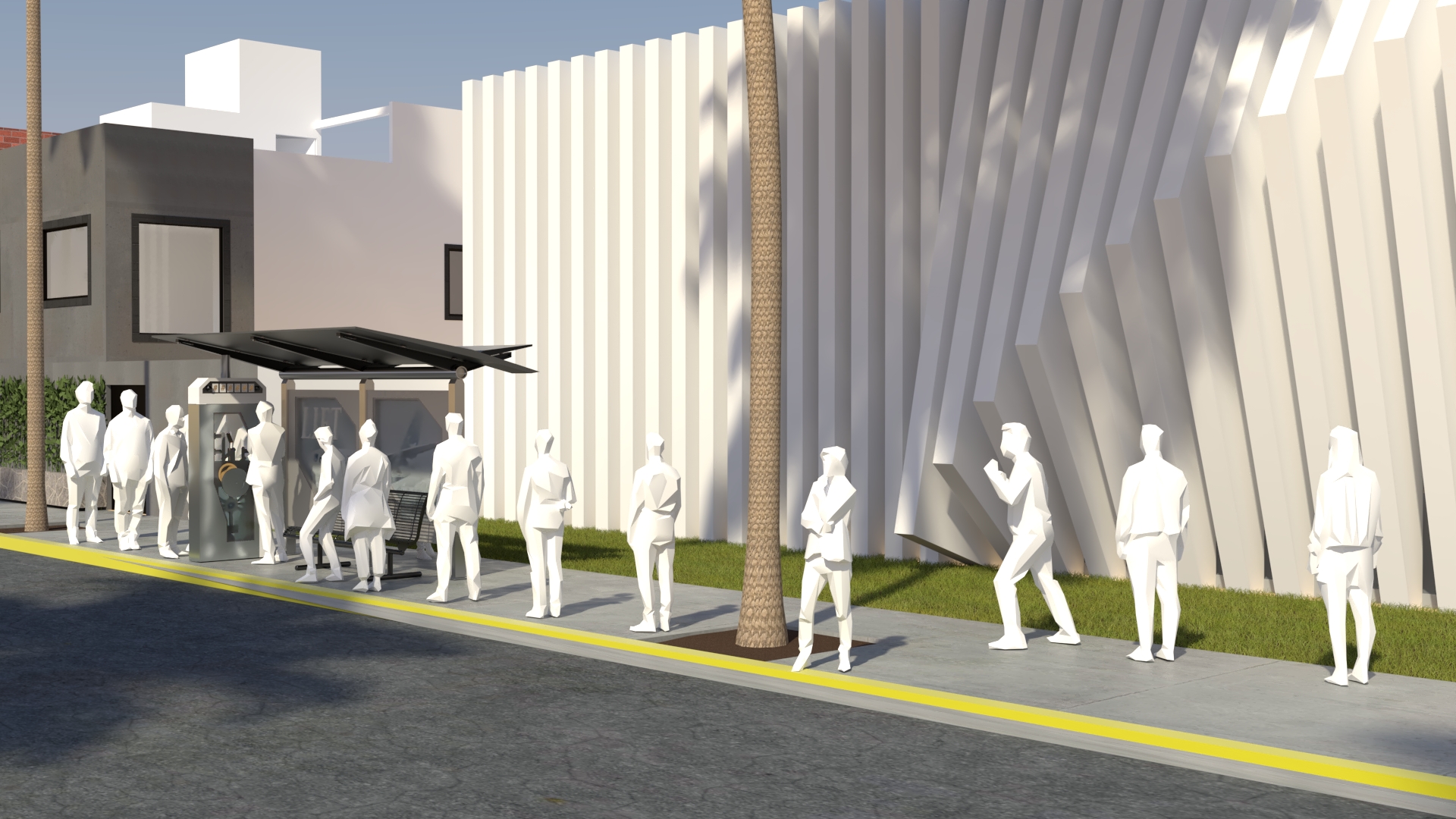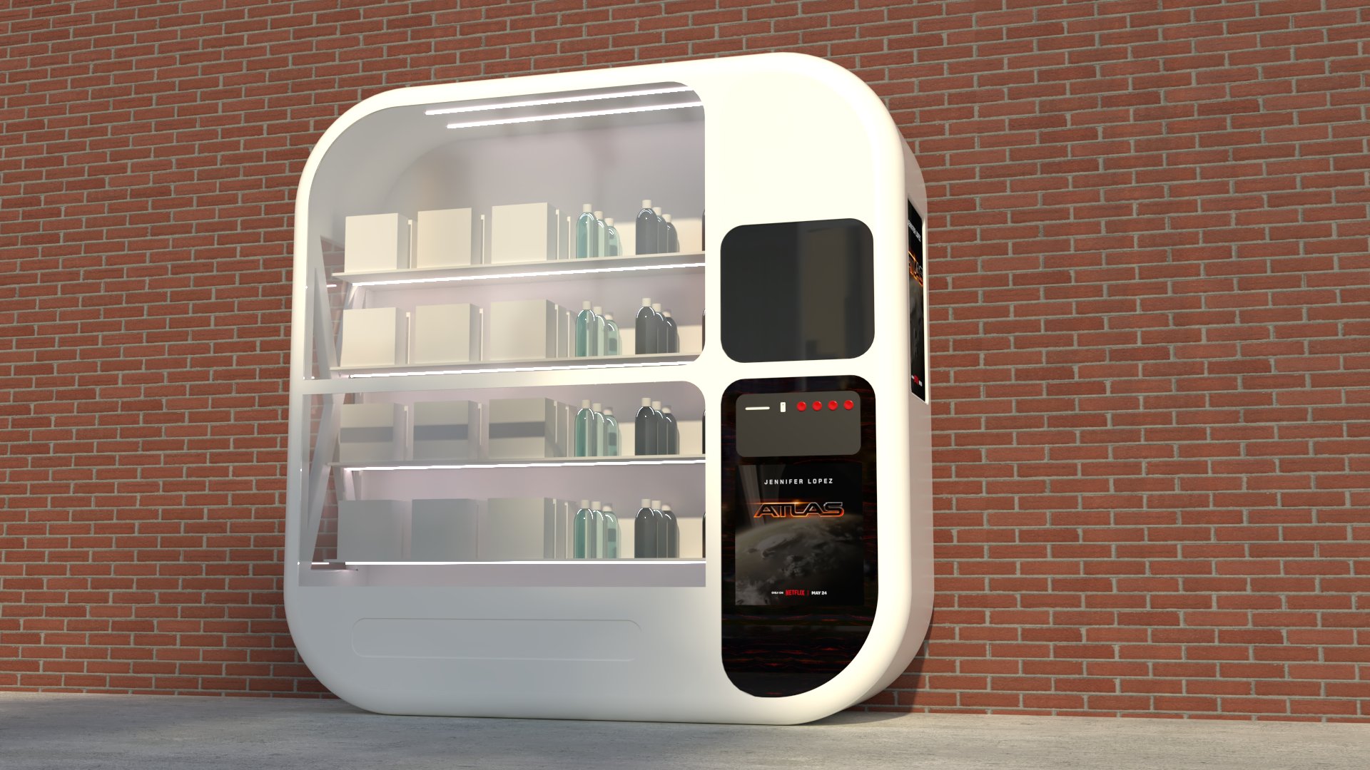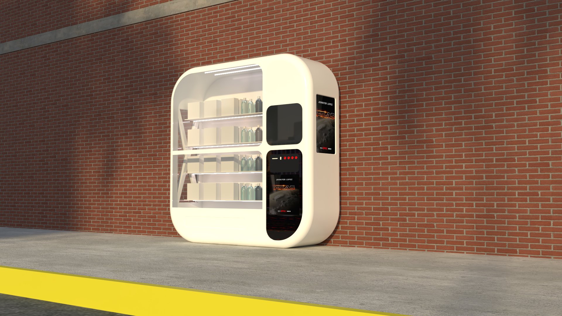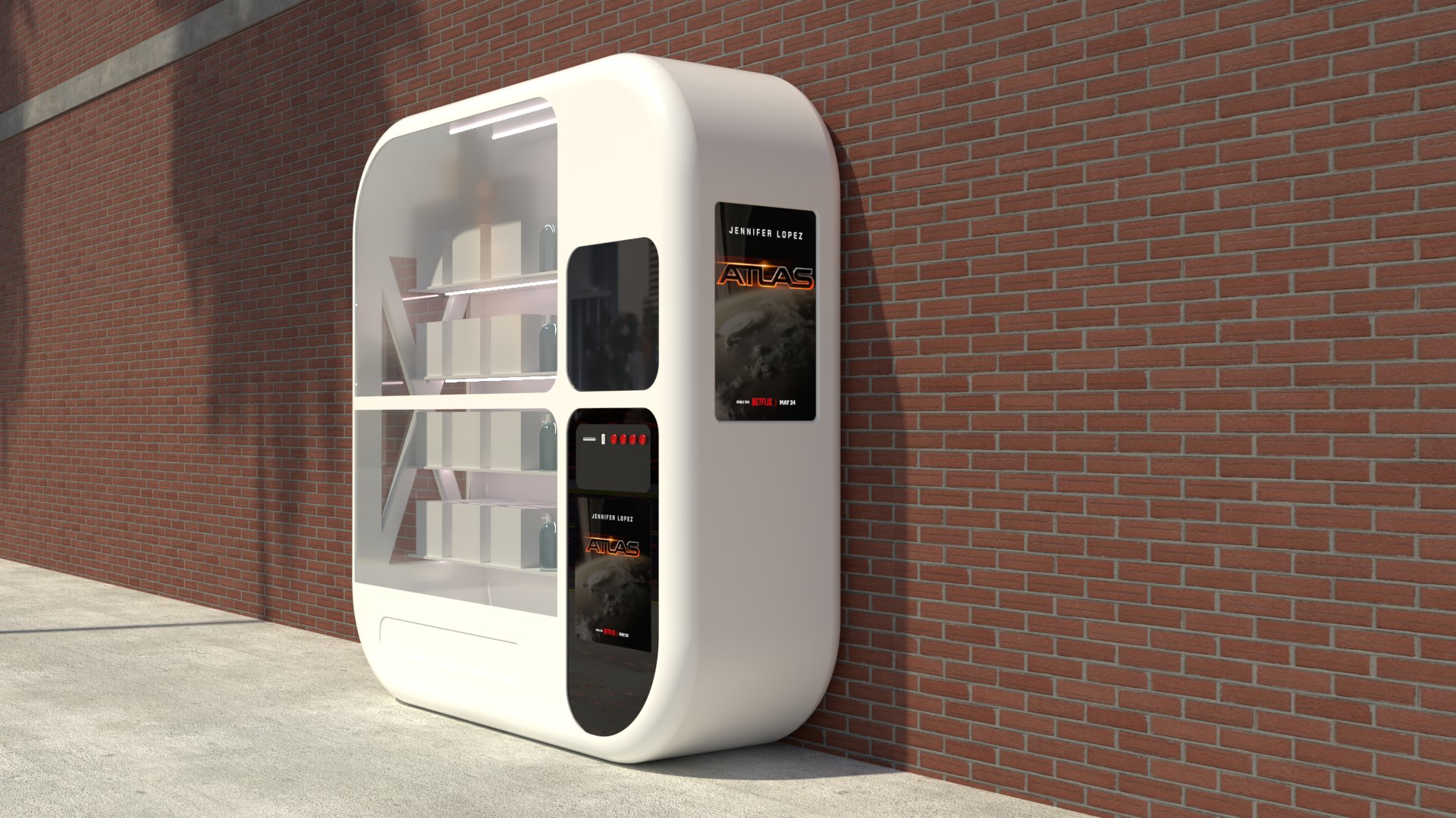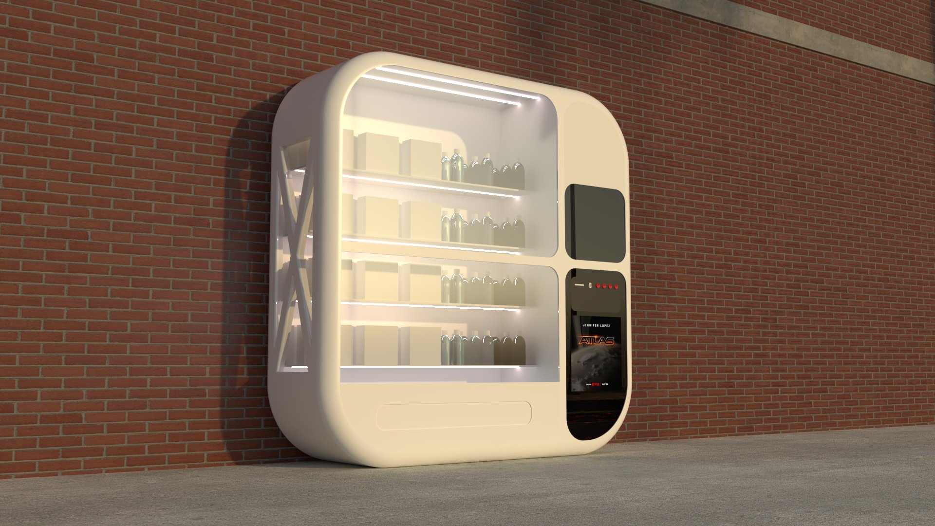 Project: Texturing of a vending machine placed alongside a building, set on a street.